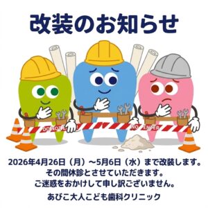 2026年4月27日~5月6日まで改装のため休診とさせていただきます。